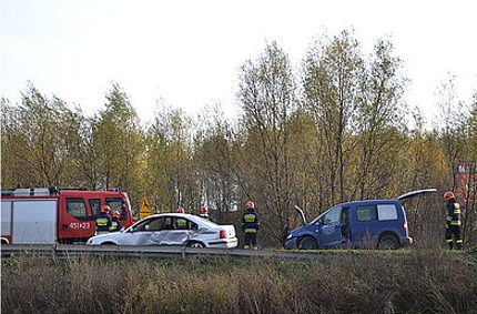 Kierowca volkswagena passata, wykonując niedozwolony w tym miejscu manewr zawracania, nie ustąpił pierwszeństwa przejazdu kierującemu volkswagenem. W wyniku zdarzenia obrażeń ciała doznali obydwaj kierowcy oraz ich pasażerowie. Rannych przewieziono do gliwickich szpitali. Postępowanie wszczęto w KMP Gliwice. Sprawcy grozi do 3 lat pozbawienia wolności.