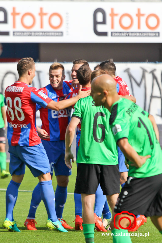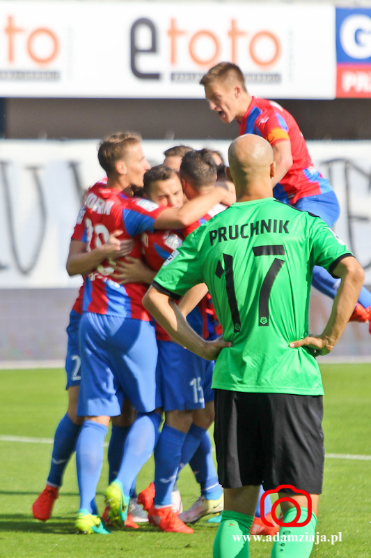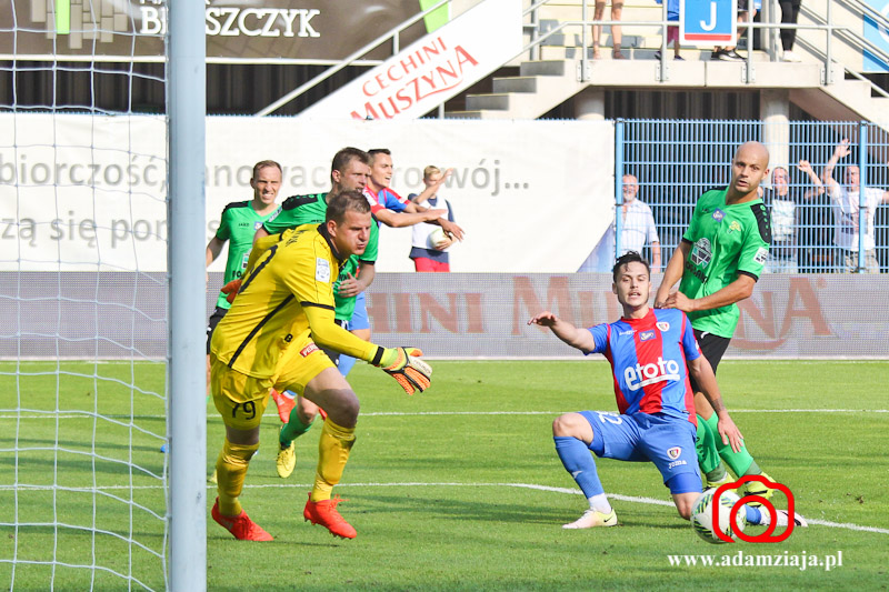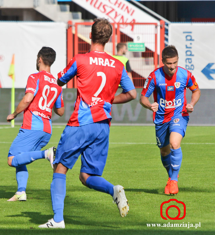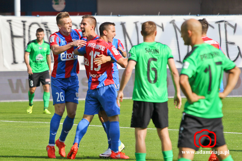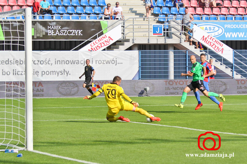 1-0 – Patrik Mraz dośrodkował w pole karne, a tam walkę o górną piłkę wygrał Marcin Pietrowski, który strzałem głową pokonał Sergiusza Prusaka.