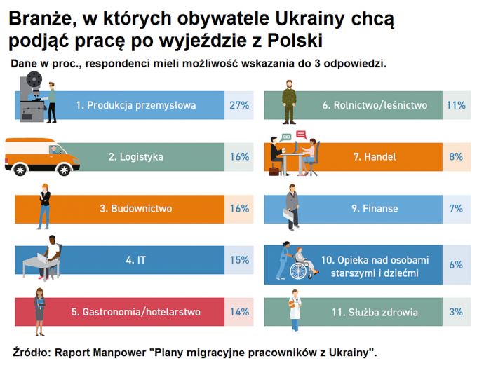 W świetle planowanych przez polskich sąsiadów ułatwień dla pracowników z Ukrainy, a także zmniejszonej liczby napływających do Polski obywateli tego kraju agencja zatrudnienia Manpower zapytała zatrudnionych w Polsce Ukraińców o ich plany zawodowe.