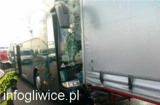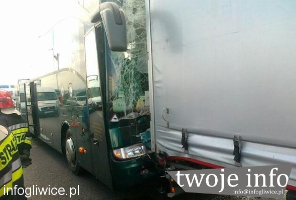 W tył TIR-a uderzył autokar, w którym znajdowały się dzieci. Nasz Czytelnik przysłał nam zdjęcia i z jego informacji wynika, że nikomu nic poważnego się nie stało. To potwierdza gliwicka policja.