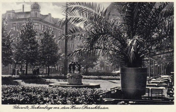 Tak w czasach Gleiwitz wyglądał teren przez dzisiejszym urzędem miejskim. Obecnie kostka brukowa.