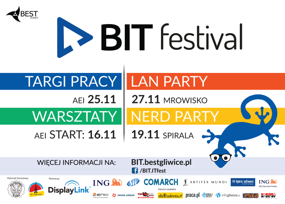Dodatkowo przez cały miesiąc będziesz miał okazję brać udział w warsztatach, tematy, harmonogram jak i zapisy są dostępne na stronie: www.bit.bestgliwice.pl/harmonogram.php