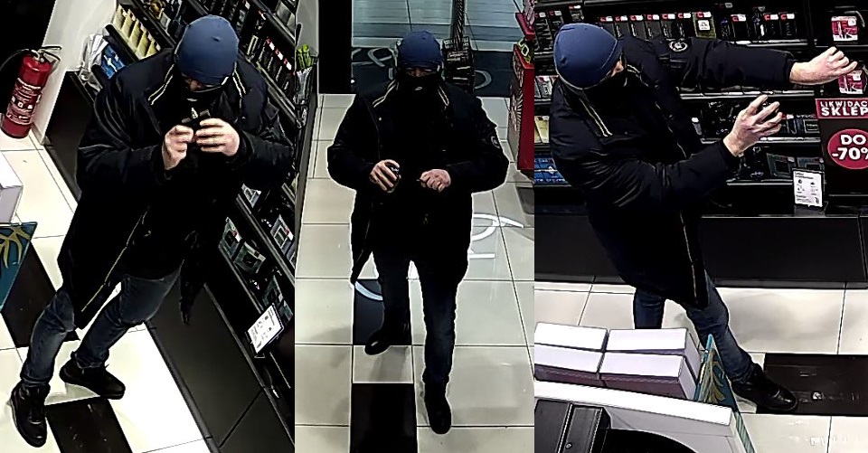 Policjanci otrzymali załączone zdjęcie z monitoringu sklepowego i przeprowadzili dochodzenie w sprawie kradzieży perfum, jednak nie zdołano ustalić tożsamości sprawcy. Nieznany mężczyzna, uwieczniony na otrzymanych z drogerii zdjęciach, jest podejrzany o kradzież mienia o wartości ponad 900 zł.