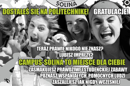 Wszystkich nowo przyjętych, a także doświadczonych już studentów Politechniki Śląskiej Samorząd Studencki wraz z fundacją Bratniak zapraszają już po raz 18 na Campus Akademicki nad Solinę.