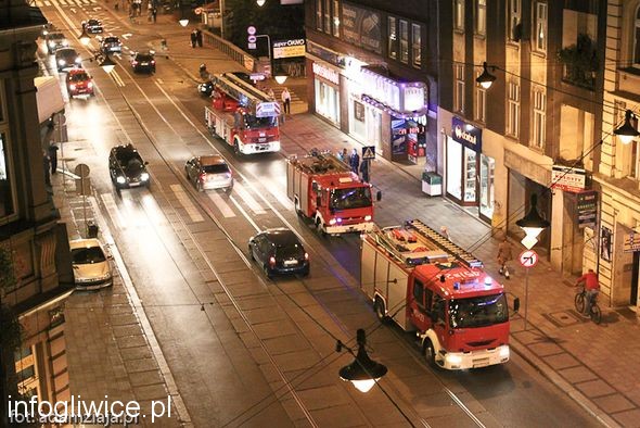 Strażacy weszli do obiektu, a po kilkunastu minutach odjechali. Jak poinformował nas mł. bryg. Dariusz Mrówka, rzecznik straży pożarnej, jednostki gaśnicze zjawiły się na ul. Zwycięstwa po otrzymaniu informacji z systemu monitoringu o ewentualnym zagrożeniu pożarem.