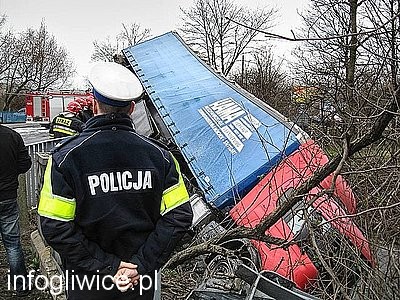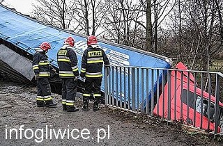 Dziś przed godz. 6:00 na skrzyżowaniu przy ul. Orlickiego, Śliwki i Portowej doszło do nietypowej kolizji drogowej. Z mostu w bezpośrednim sąsiedztwie ze skrzyżowaniem spadł do Kłodnicy samochód ciężarowy tzw. TIR.