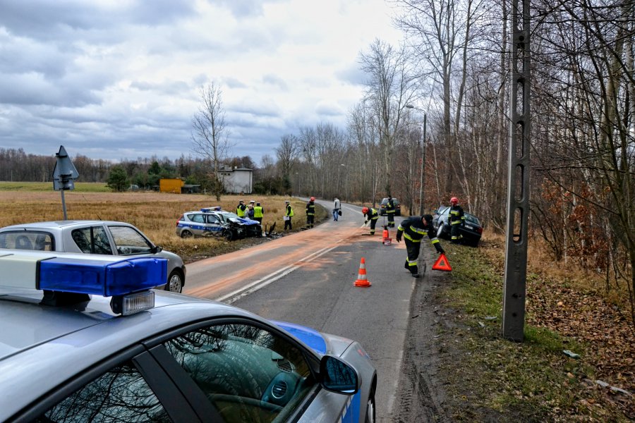 Na lekkim łuku drogi policyjna kia ceed czołowo zderzyła się z nadjeżdżającym z naprzeciwka audi A3. Ze wstępnych ustaleń wynika, że kobieta kierująca audi z niewyjaśnionych przyczyn, nagle, zjechała na przeciwległy pas ruchu.