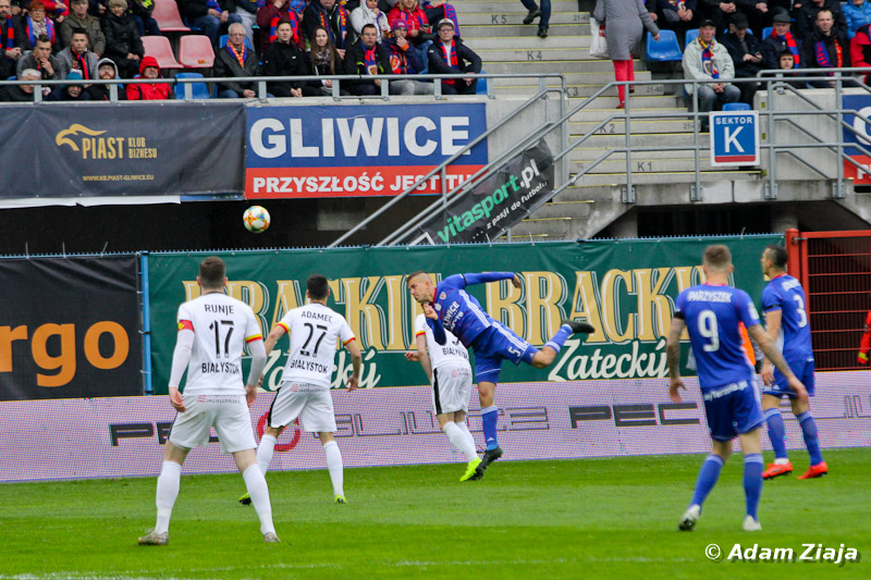 Piast Gliwice w emocjonującym meczu wygrał z Jagiellonią Białystok i wskoczył na fotel lidera piłkarskiej ekstraklasy.