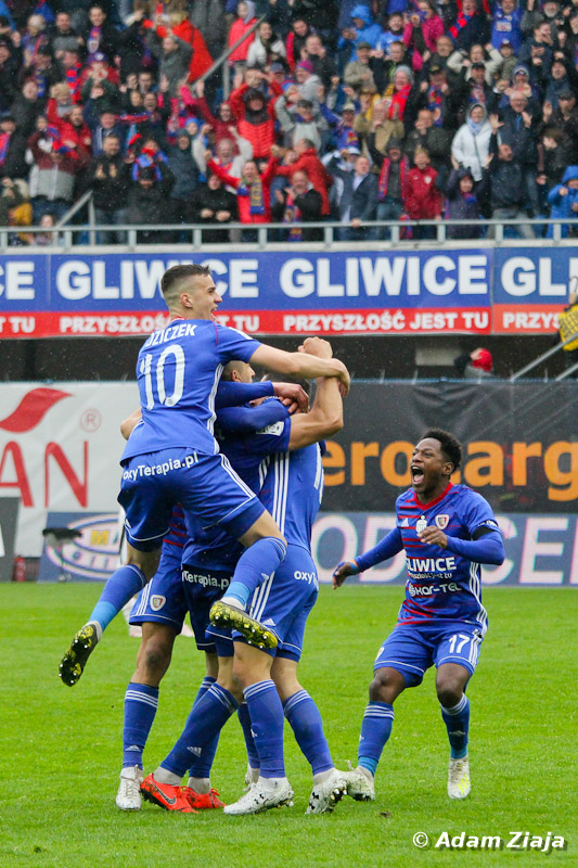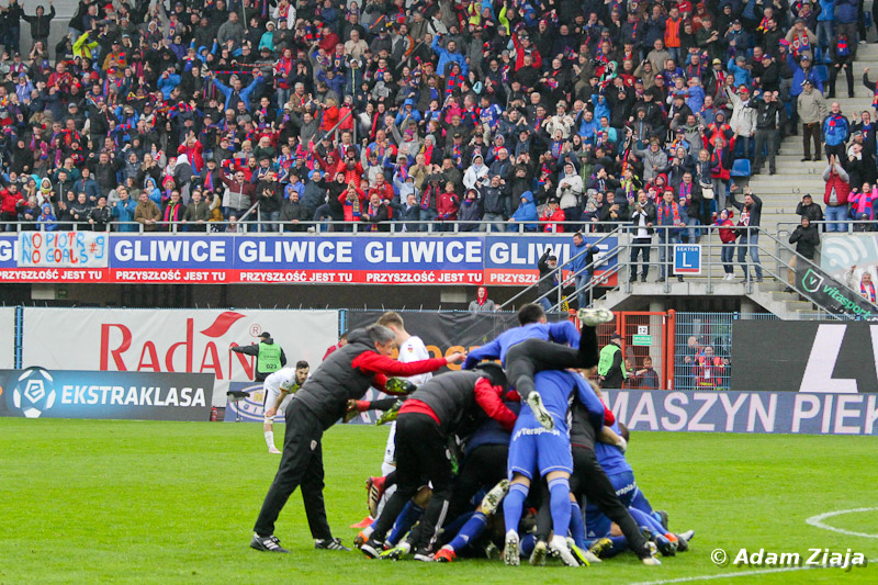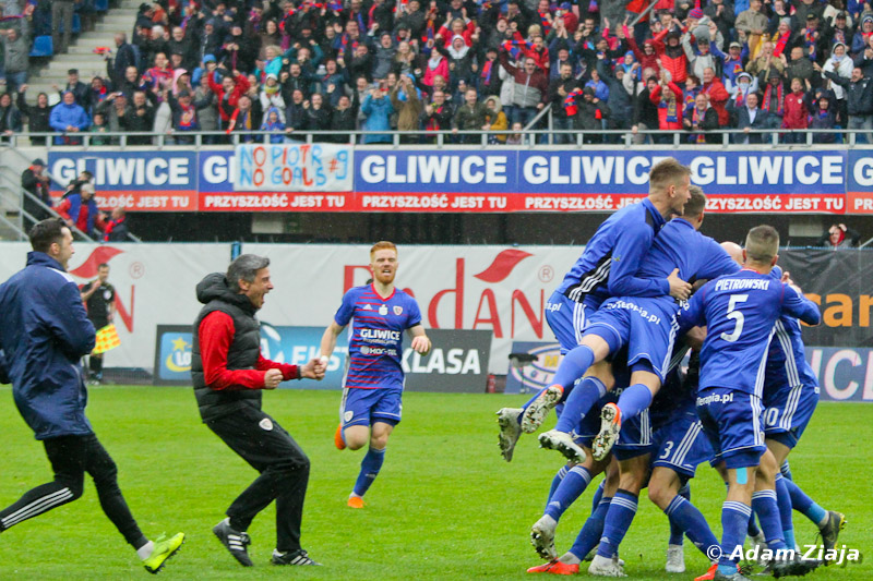 Dodatkowo dzięki remisowi Legii z Pogonią Szczecin, rozsiadł się tam na dłużej – z przewagą 1 punktu nad stołeczną drużyną. W środę gliwiczanie zagrają z Pogonią, a w niedzielę z Lechem Poznań. Wiele wskazuje na to, że piłkarze z Gliwic zdobędą historyczny tytuł!