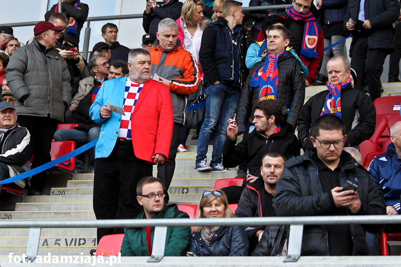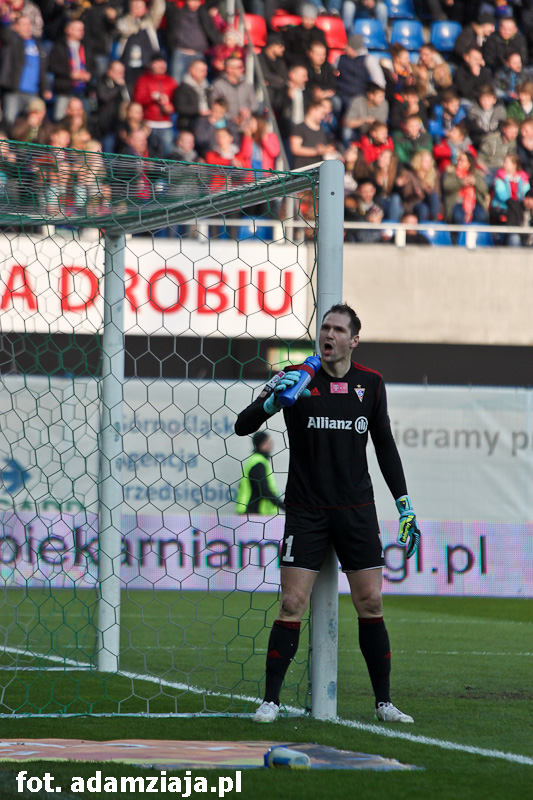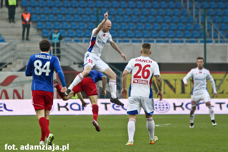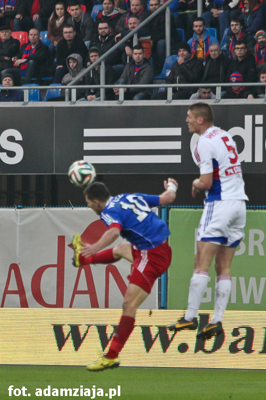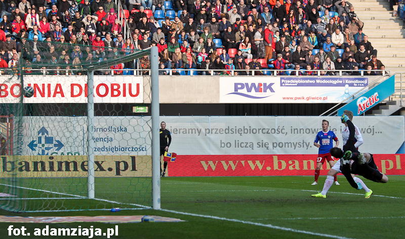 0-1 – Po zamieszaniu w polu karnym Niebiesko-czerwonych do dogodnej sytuacji doszedł Rafał Kosznik i wykorzystał tę okazję, otwierając wynik spotkania.