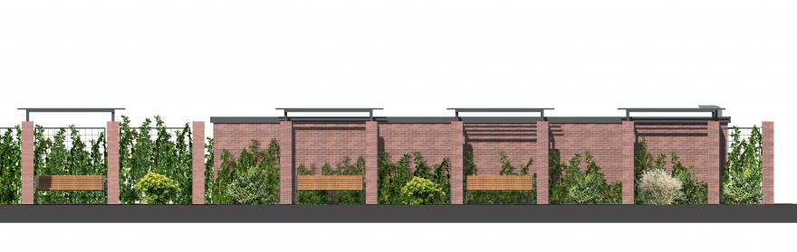 Wszystkie jej elementy nawiązują do małej architektury, znajdującej się na skwerze. Stacja została obłożona płytką klinkierową nawiązującą do cegły słupków, otoczą ją pergole i pnącza, pojawią się ławki oraz niska zieleń.