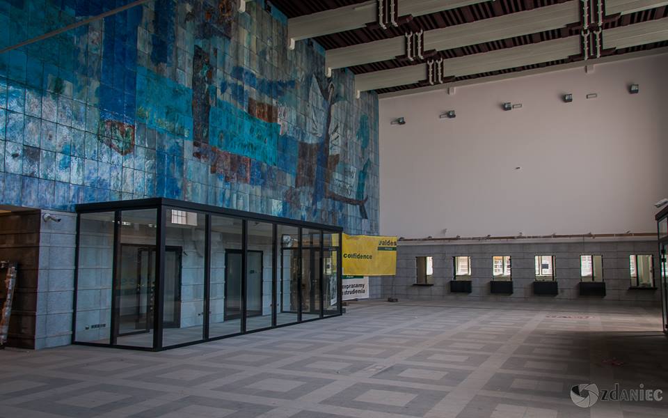a ta paskudna mozaika nadal jest? coś okropnego, przyjeżdżają ludzie z innych krajów i dziwią się, że takie paskudztwo wisi w głównym hallu…