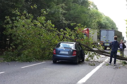 Informację i zdjęcia dostaliśmy od naszego Czytelnika, który przejeżdżał akurat tą trasą. Na miejscu po chwili pojawiła się straż pożarna, która zajęła się usuwaniem powalonego drzewa. Przez kilkadziesiąt minut ruch odbywał się jednym pasem. – Pasażerka samochodu została lekko ranna i zabrano ją do szpitala – mówi kom. Marek Słomski z gliwickiej policji.