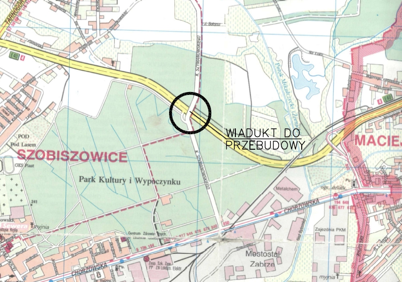 20 sierpnia ruszą prace przy modernizacji obiektu w ciągu ulicy Szymanowskiego. Ulica ta stanowi bezpośredni dojazd z ulicy Chorzowskiej do Żernik. Jest ważnym skrótem dla mieszkańców tej dzielnicy jadących w stronę Zabrza i węzła Maciejów na DK88 bez konieczności wyjazdu na obciążoną ulicę Tarnogórską. W ramach prac budowlanych rozebrana zostanie istniejąca nawierzchnia jezdni, chodników i dróg na dojazdach, a także elementy konstrukcji wiaduktu.