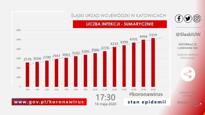 Aktualny raport o stanie sytuacji epidemiologicznej w województwie śląskim – wg komunikatów WSSE Katowice – 16.05.2020, godz. 17.30.