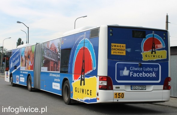 Trzy 18-metrowe MAN-y wyróżniać będzie charakterystyczna szata kolorystyczna. Na dużych zdjęciach zaprezentowano to, czym nasze miasto może się pochwalić. – W ten sposób chcemy zachęcić do polubienia profilu Gliwic na Facebook’u – mówią urzędnicy. Na każdym z 3 autobusów umieszczono inny zestaw zdjęć, które pokazują to, co w Gliwicach najlepsze. Jest więc symbol miasta, czyli Radiostacja, są obiekty sportowe, strefa ekonomiczna, Politechnika Śląska oraz zawodnicy Piasta. Autobusy kursować będą na liniach obsługiwanych przez PKM Gliwice. Autobusy kursować będą na liniach obsługiwanych przez PKM Gliwice. Facebookowe pojazdy można zobaczyć na trasie os. Kopernika – os. Waryńskiego (692), Obrońców Pokoju – Waryńskiego (699), Trynek – Łabędy (126) oraz Sośnica – Łabędy (197)