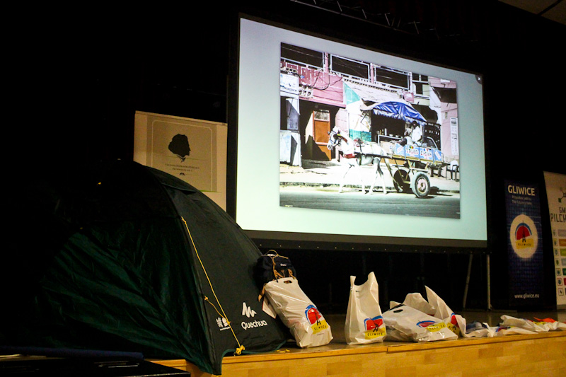 W części wykładowej wystąpili Michał Biel ( http://instagram.com/fotocelebryta ), urodzony w Gliwicach fotograf sportowy pracujący na stałe dla organizacji KSW oraz dla marki odzieżowej Pitbull West Coast. Swoje fotograficzne projekty realizował na trzech kontynentach. W obszarze jego zainteresowania pozostaje zawsze człowiek, rywalizacja oraz emocje jej towarzyszące. Opowiedział nam o szalonej przygodzie z jazdy od Budapesztu po Bamako (Mali). Budapeszt-Bamako jest dla tych, którzy marzyli o Dakarze, Afryce, Saharze i uderzali w otwarty brud w ekstremalnych warunkach. To minimalne wydarzenie assistance, co oznacza, że jeśli masz kłopoty, możesz liczyć tylko na siebie i swoich kolegów.
