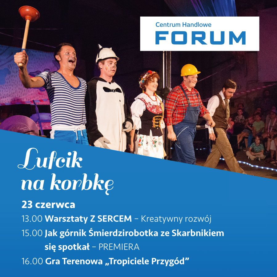 Kolektyw teatralny Lufcik na korbkę zaprasza na premierowy pokaz spektaklu „Jak górnik Śmierdzirobotka ze Skarbnikiem się spotkał”. Jest to przedstawienie w kabaretowym klimacie z lekko