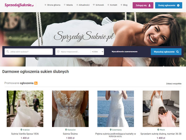 Tutaj mamy suknie do wyboru do koloru. Wybieramy nasze miasto – Gliwice i ukazują nam się dostępne modele. Suknie są nowe lub używane. Jest bardzo szeroki zakres wyboru fasonu oraz rozmiaru odpowiedniego dla siebie. Co za tym idzie wybór ceny, która nam odpowiada. Mamy podany bezpośredni telefon oraz e-mail do wybranego przez nas ogłoszenia, więc w razie pytań śmiało można dzwonić i dowiedzieć się więcej informacji na temat interesującej nas sukienki.