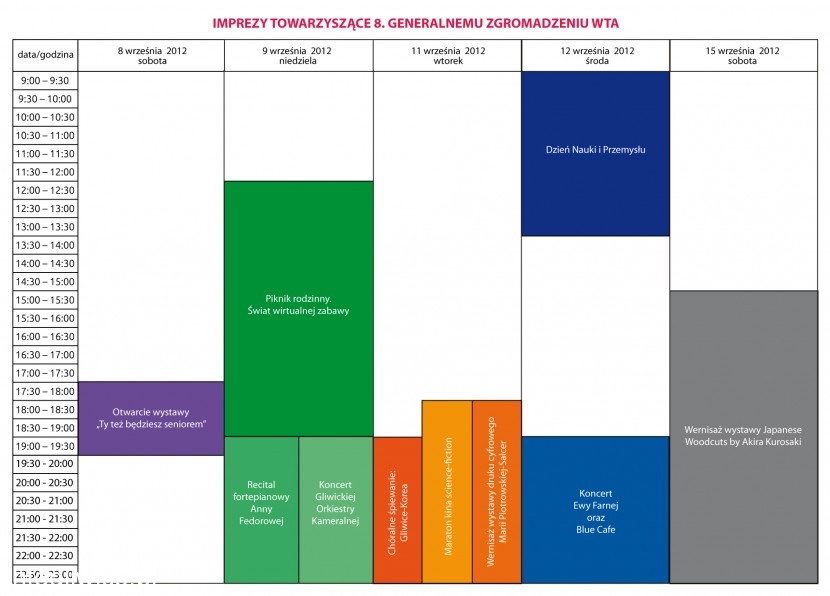 W Gliwicach gościmy kilkudziesięciu reprezentantów WTA z całego świata. Głównie z państw, które dzisiaj są liderami innowacji – Korei Południowej, Japonii, Tajwanu i Chin. Generalne Zgromadzenie World Technopolis Association to trzy dni konferencji, sympozjów i warsztatów oraz szereg imprez towarzyszących, podczas których będzie można spotkać ludzi, którzy już dziś tworzą historię przyszłości. To impreza bardzo ważna dla naszego miasta. Dzięki niej Gliwice mają szansę zaistnieć w Polsce i na świecie jako miasto innowacyjne. Przez 3 dni będzie się wiele działo.