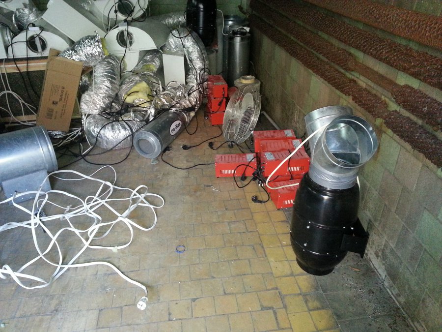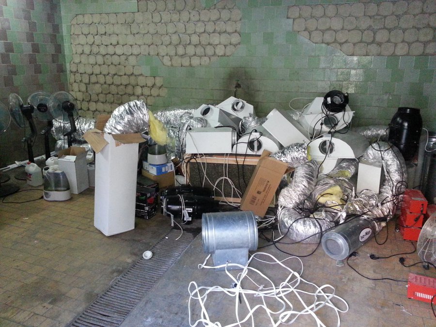 Zainwestował w sprzęt: lampy, wentylatory, klimatyzatory, suszarki i transformatory.