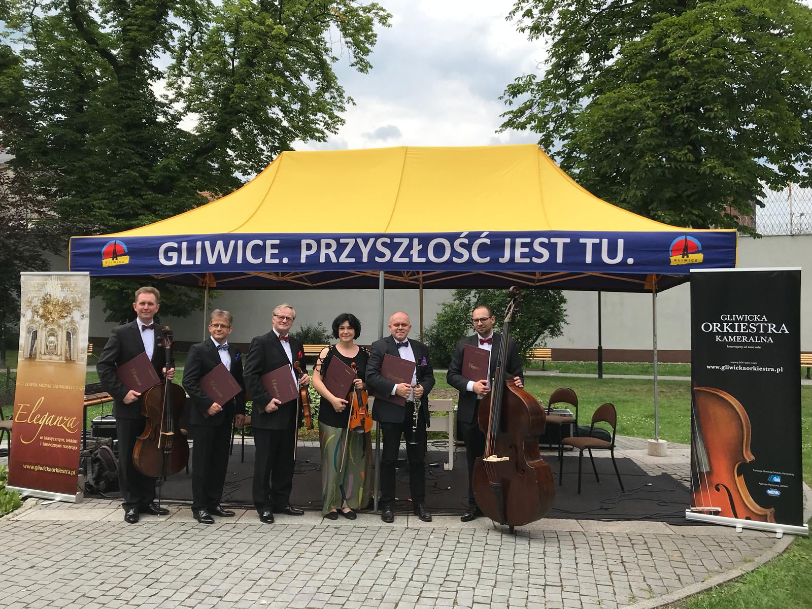 Fundacja Gliwickiej Orkiestry Kameralnej 22 lipca 2018 roku zaprasza o godz. 12.00 na drugi koncert II edycji cyklu koncertów plenerowych Zespołu Muzyki Salonowej ELEGANZA pod tytułem Otwarty salon muzyczny, które odbywają się w każdą 3 niedzielę miesiąca od czerwca do września, zawsze w samo południe w różnych miejscach wokół Starego Miasta w Gliwicach.