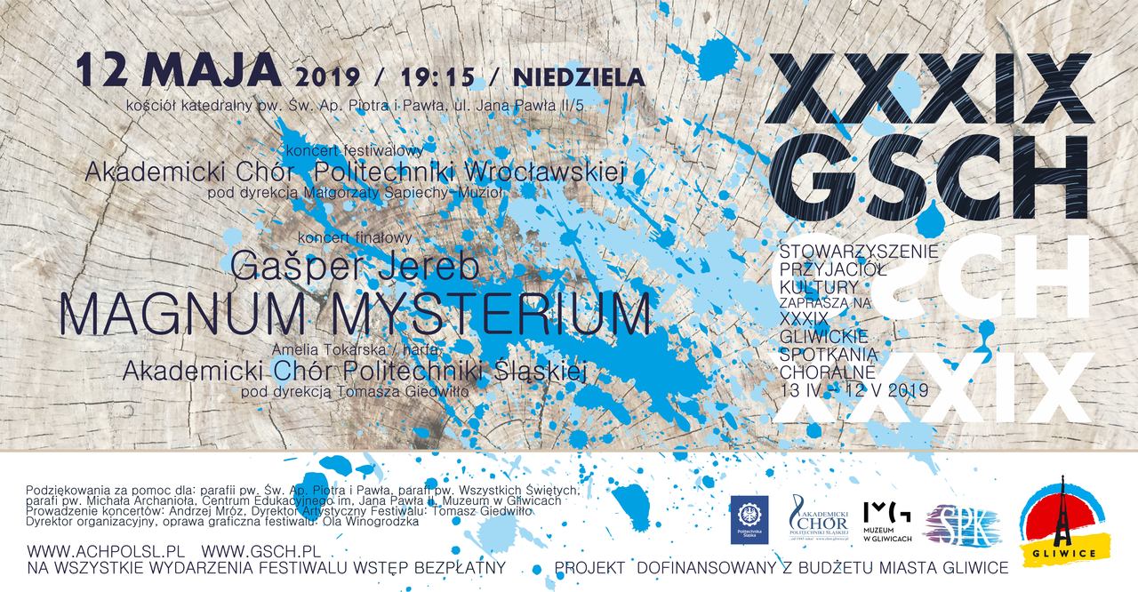 W tym roku zapraszamy na jego XXXIX edycję: trzy festiwalowe dni, pięć koncertów, warsztaty muzyczne dla dzieci i dorosłych, spotkanie z dawnymi instrumentami i muzyką ludową, opowieści o tradycji i zwyczajach, praca z głosem, możliwość wspólnego śpiewu, spotkanie z muzyką klasyczną w wykonaniu solistów, zespołów kameralnych oraz wieloosobowych chórów, prezentacja muzyki współczesnej i dawnej. Zapraszamy do Gliwic na koncert finałowy 12 maja. Szczegóły na www.gsch.pl.