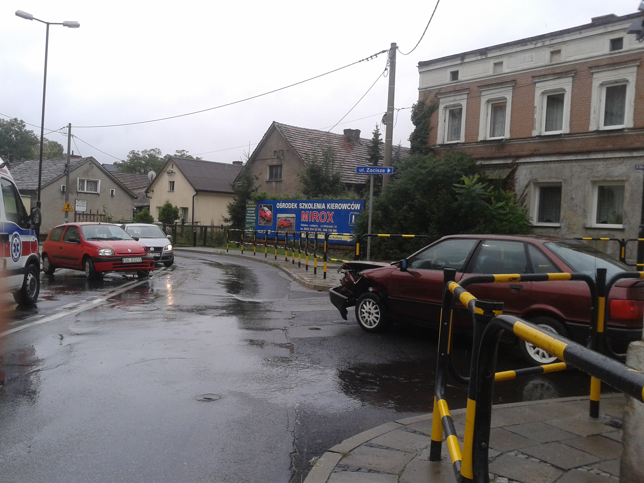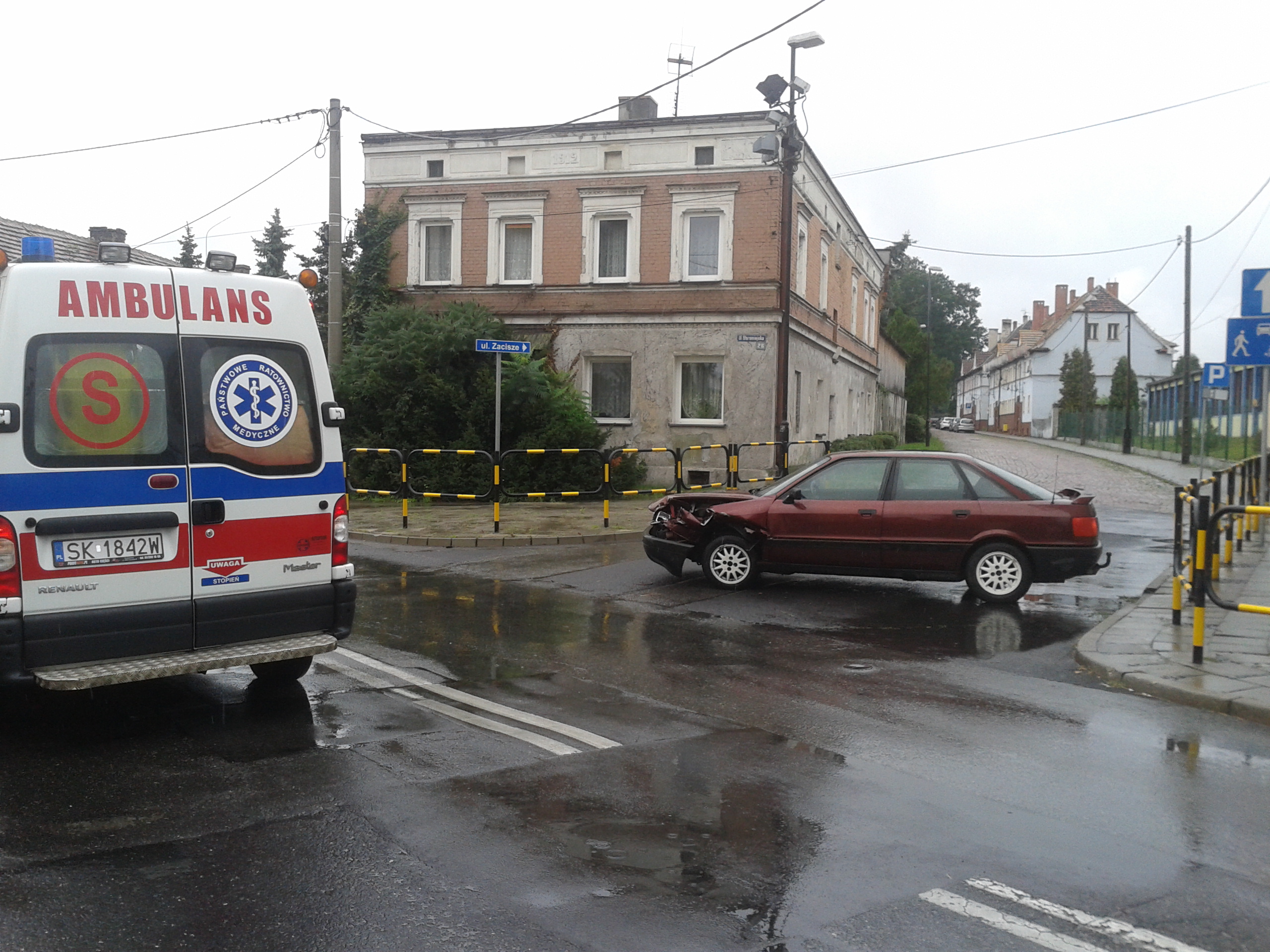 Samochód jadący od strony ul. Starogliwickiej znalazł się na przeciwległym pasie drogi i zderzył się z pojazdem wjeżdżającym w zakręt. Kierowcy samochodu marki Audi udzieliło pomocy pogotowie ratunkowe. Samochody miały gliwickie rejestracje.