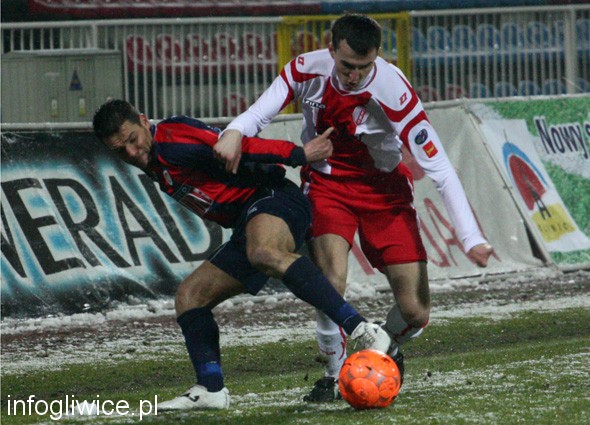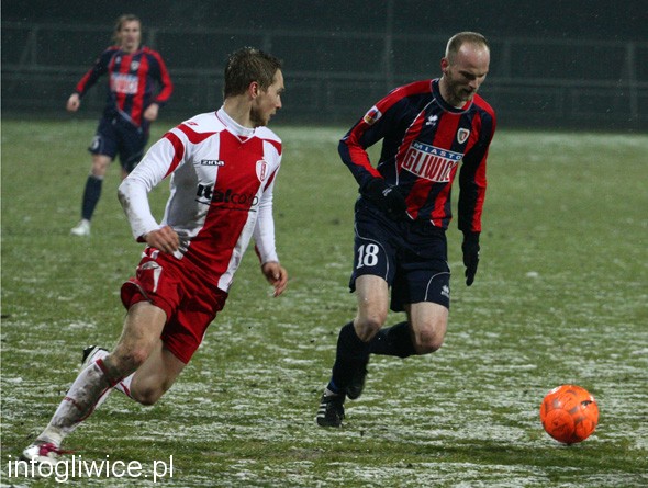 Mecz na szczycie I ligi, w którym Piast Gliwice podejmował w Wodzisławiu ŁKS Łódź, rozgrywany był w prawie zimowych warunkach.