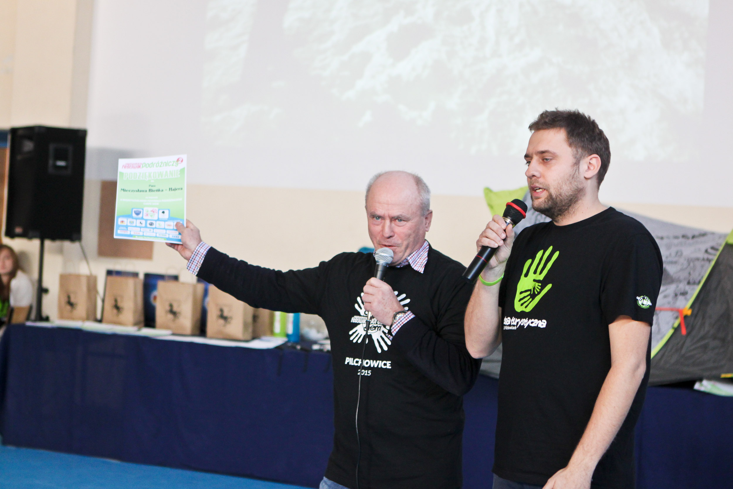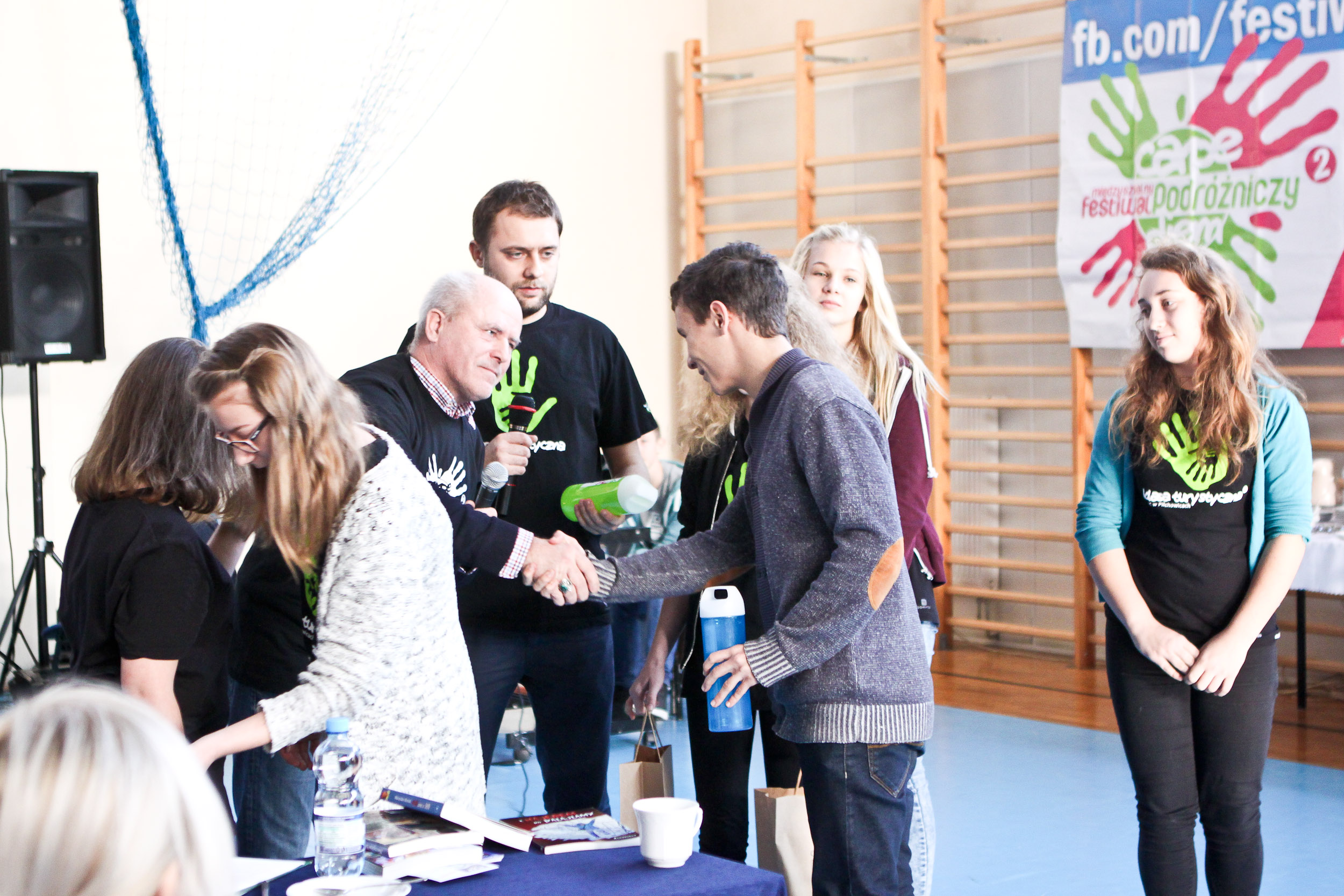 Sponsorami nagród byli: Prezydent Miasta Gliwice Pan Zygmunt Frankiewicz, Wójt Gminy Pilchowice Pan Maciej Gogulla, Dyrektor Zespołu Szkół im. I.J. Paderewskiego z Knurowa Pani Dorota Gumienny, Właścicielka Centrum Nurkowego Atlantyda z Gliwic Pani Ika Olszańska oraz Wydawnictwo Helion z Gliwic. Nagrodami za pierwsze miejsca w poszczególnych kategoriach były: namiot, śpiwór i plecak, drugie miejsce: zestawy – powerbank + kubek termiczny i za trzecie miejsce: zestaw – torba biodrowa + buffa turystyczna. Były także nagrody przewidziane dla słuchaczy festiwalu, które wręczali wszyscy prelegenci osobą które uważnie słuchały wykładów i znały odpowiedzi na trudne pytania! Wśród tych nagród były: dwa Bony Podarunkowe o wartości 120 zł każdy na Intra Nurkowe od Centrum Nurkowego Atlantyda z Gliwic, cztery bidony turystyczne, sześć książek i przewodników turystycznych i 3 selfistiki.