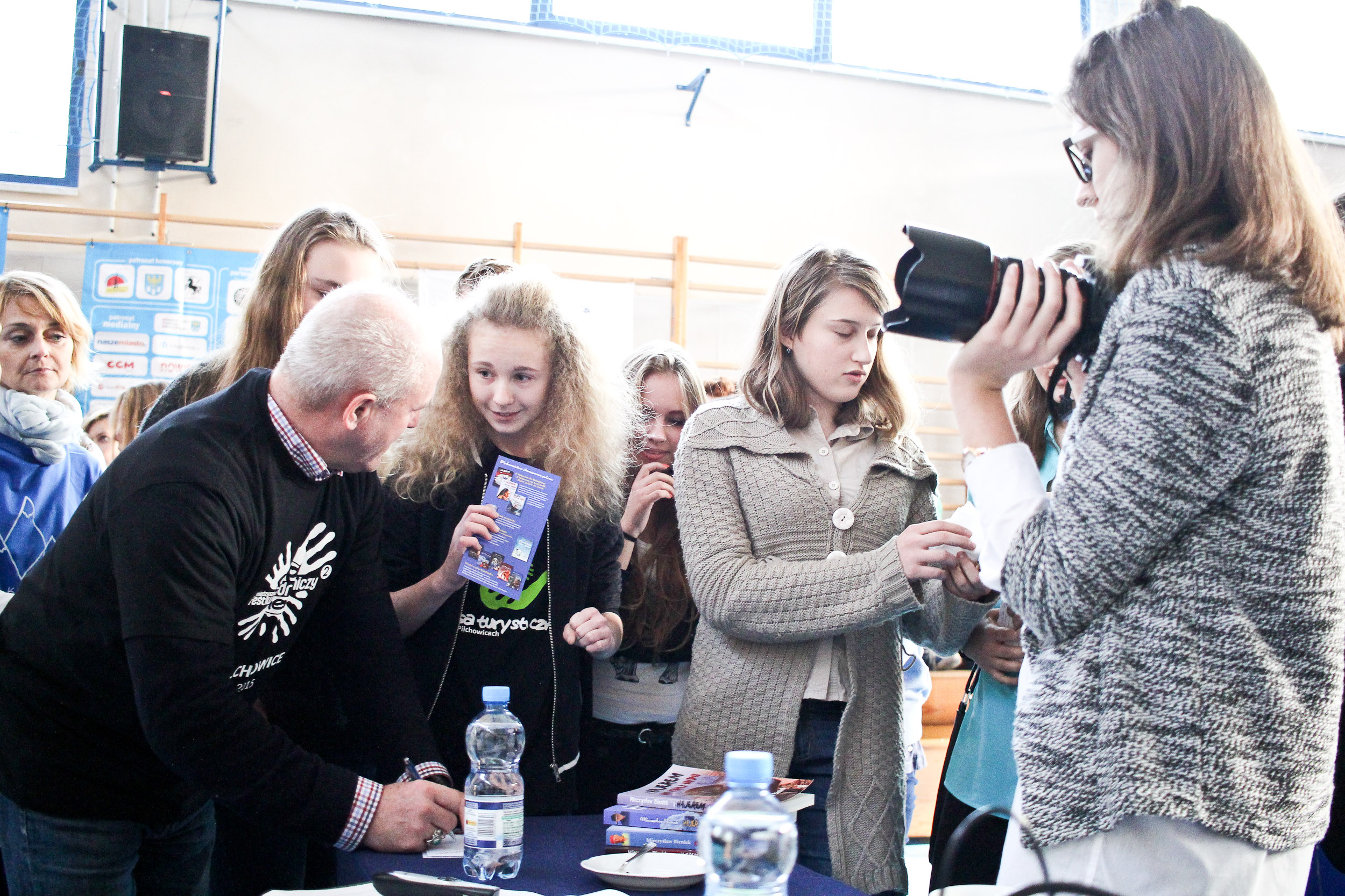 Hajer zaczarował swoją osobą pilchowicką publiczność, opowiadał niesamowite historie, które przeżył podczas wielu podróży a był w 117 krajach na świecie na 4 kontynentach! Na koniec zdradził wszystkim tajemnice taniego i bezpiecznego podróżowania. Poprosił by wszyscy chwycili się za ręce i powiedzieli do osób siedzących obok nas Kocham Cię! Podróżowanie to głównie poznawanie ludzi spotykanych na swojej drodze. Szacunek, miłość i otwarcie na drugiego człowieka to najlepszy sposób by poznać odwiedzany kraj od kuchni i pewność, że gdy znajdziemy się w trudnej sytuacji znajdzie się ktoś kto nam pomoże, nakarmi, da schronienie wesprze finansowo. Po wykładzie były autografy, wspólne zdjęcia i setki pytań od uczniów.