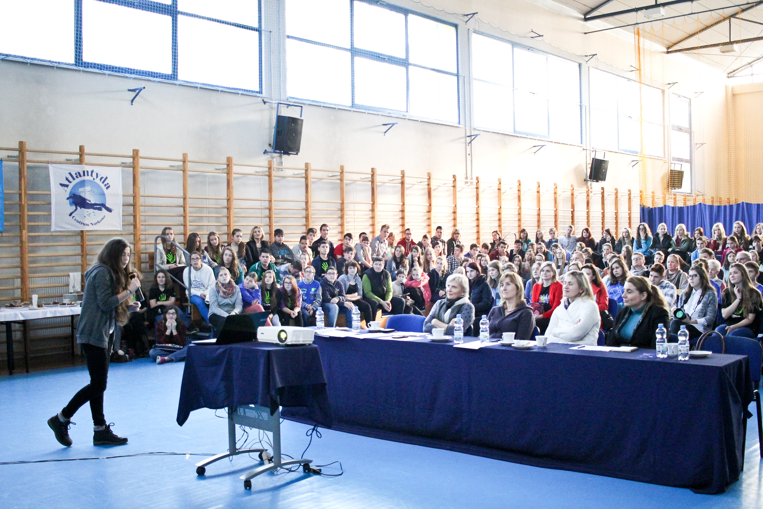 Punktualnie o dziewiątej festiwal oficjalnie otworzył Dyrektor Zespołu Szkół w Pilchowicach – Pan Łukasz Kwiotek. Pierwszą prelegentką była Iga Olszańska z Centrum nurkowego Atlantyda z Gliwic, która metodą Pecha Kucha opowiedziała o tajnikach nurkowania. Podczas całego festiwalu można było odwiedzać stoisko ze sprzętem nurkowym i wypytywać pracowników Atlantydy o ten fascynujący sport.