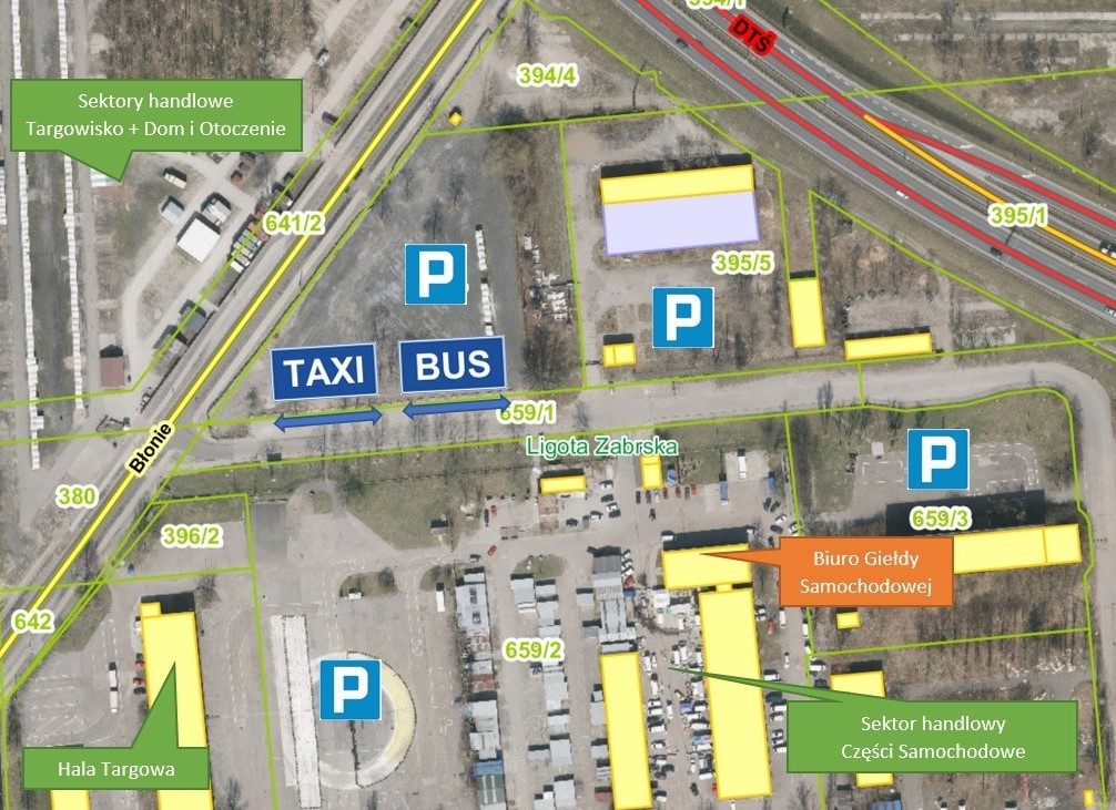 W ramach tych prac wydzielono strefy postoju dla pojazdów TAXI oraz BUS oznakowanych właściwymi znakami informacyjnymi. Postój jest czynny we wszystkie dni giełdowe, a korzystanie z niego, dla tych pojazdów jest bezpłatne.