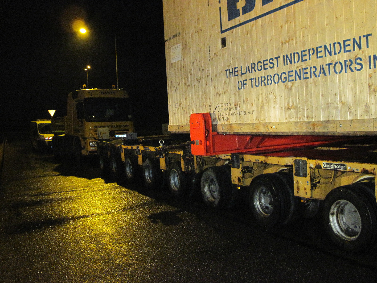 Będzie papierek i ten sam zestaw pojedzie dalej i nie będzie ani za długi, ani za ciężki, tylko będzie zgłoszony plan przejazdu i to oczywiście również w porze nocnej, żeby nie zakłócać ruchu, a nie oszukać polaczków, jak to żądni sensacji piszą. Taka specjalistyczna firma raczej się nie pomyliła, tylko urzędasy zawaliły. No i pewnie konkurencja wniosła „uwagi krytyczne”. Te 198 ton jest rozłożone na kilkanaście osi, no i na zdjęciach widać, że to zwykły generator, a nie jak to piszą inne redakcje „transport grozy”.