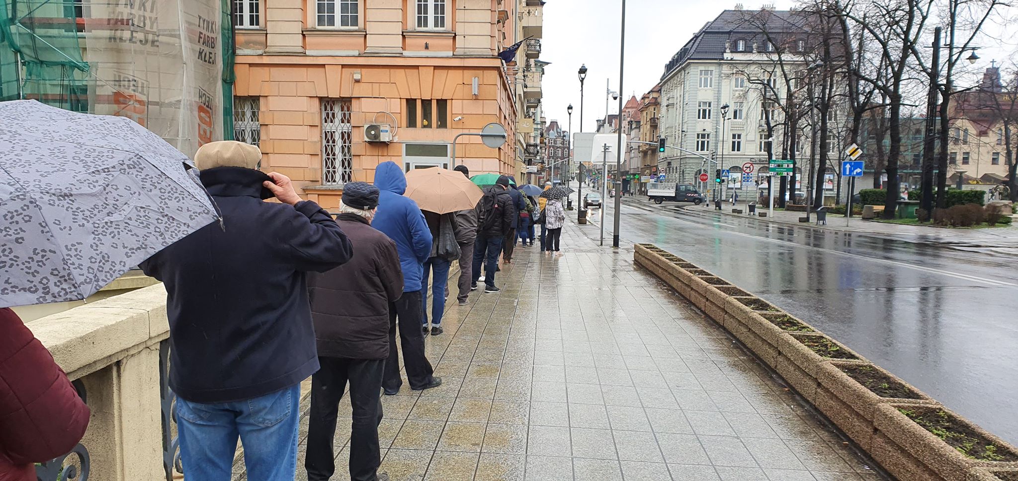 Na zdjęciu nadesłanym przez naszego Czytelnika Piotra, widać kolejkę do poczty przy ul. Zwycięstwa w Gliwicach. Niestety, nie jest to jednorazowy przypadek. Ludzie „w sznureczku” czekają tam niemal cały czas.