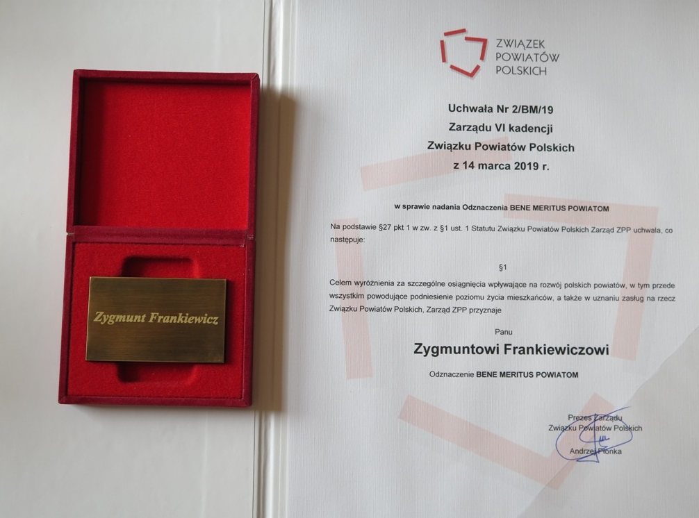 Związek Powiatów Polskich przyznał prezydentowi Gliwic medal Bene Meritus Powiatom za szczególne osiągnięcia wpływające na rozwój polskich powiatów i podnoszące poziom życia mieszkańców, a także w uznaniu zasług na rzecz Związku Powiatów Polskich. Odznaczenia zostały wręczone z okazji 20-lecia istnienia związku, podczas gali XXV Zgromadzenia Ogólnego Związku Powiatów Polskich.
