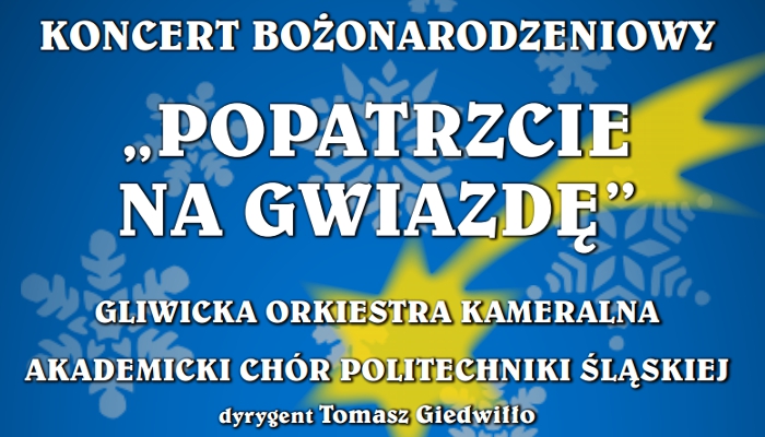 Prezydent Miasta Gliwice Zygmunt Frankiewicz oraz Fundacja Gliwickiej Orkiestry Kameralnej zapraszają na Koncert Bożonarodzeniowy „Popatrzcie na Gwiazdę”. Koncert odbędzie się 15 grudnia o godz. 17.00, w kościele pw. Wszystkich Świętych w Gliwicach.