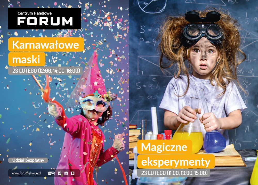 W najbliższą sobotę (23 lutego) w gliwickim CH FORUM dzieci poeksperymentują oraz przygotują sobie efektowne maski karnawałową zabawę.