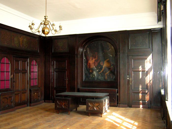 – Budynek przy ul. ks. Hlubka 4 to reprezentacyjna budowla wzniesiona na początku XX stulecia, w okresie największej prosperity huty założonej przez Salomona Huldschinsky’ego. Mimo upływu lat wciąż wiele elementów przypomina o dawnej świetności. To klatka schodowa z kutymi balustradami czy reprezentacyjne wejście do budynku – podkreśla Ewa Pokorska, miejski konserwator zabytków. Główne wejście do budynku zaakcentowano czterema masywnymi kolumnami jońskimi, zwieńczonymi trójkątnym naczółkiem. Zdobią je także płaskorzeźby przedstawiające alegorię przemysłu ciężkiego, handlu, żeglugi i budownictwa oraz symbole hutnicze – obcęgi, młot i żelazko. Prawdziwą perełką jest natomiast wpisany do rejestru zabytków wystrój gabinetu dyrektora i sali konferencyjnej (na zdjęciu poniżej). Składają się na niego oryginalne drewniane okładziny ścian i drzwi, meble, kominki oraz zegar. Zachowały się także obrazy. W sali konferencyjnej są to personifikacje handlu i przemysłu, ognia, wiatru, wody i światła, a w gabinecie dyrektora – obrazy o tematyce hutniczej i z motywami roślinnymi.