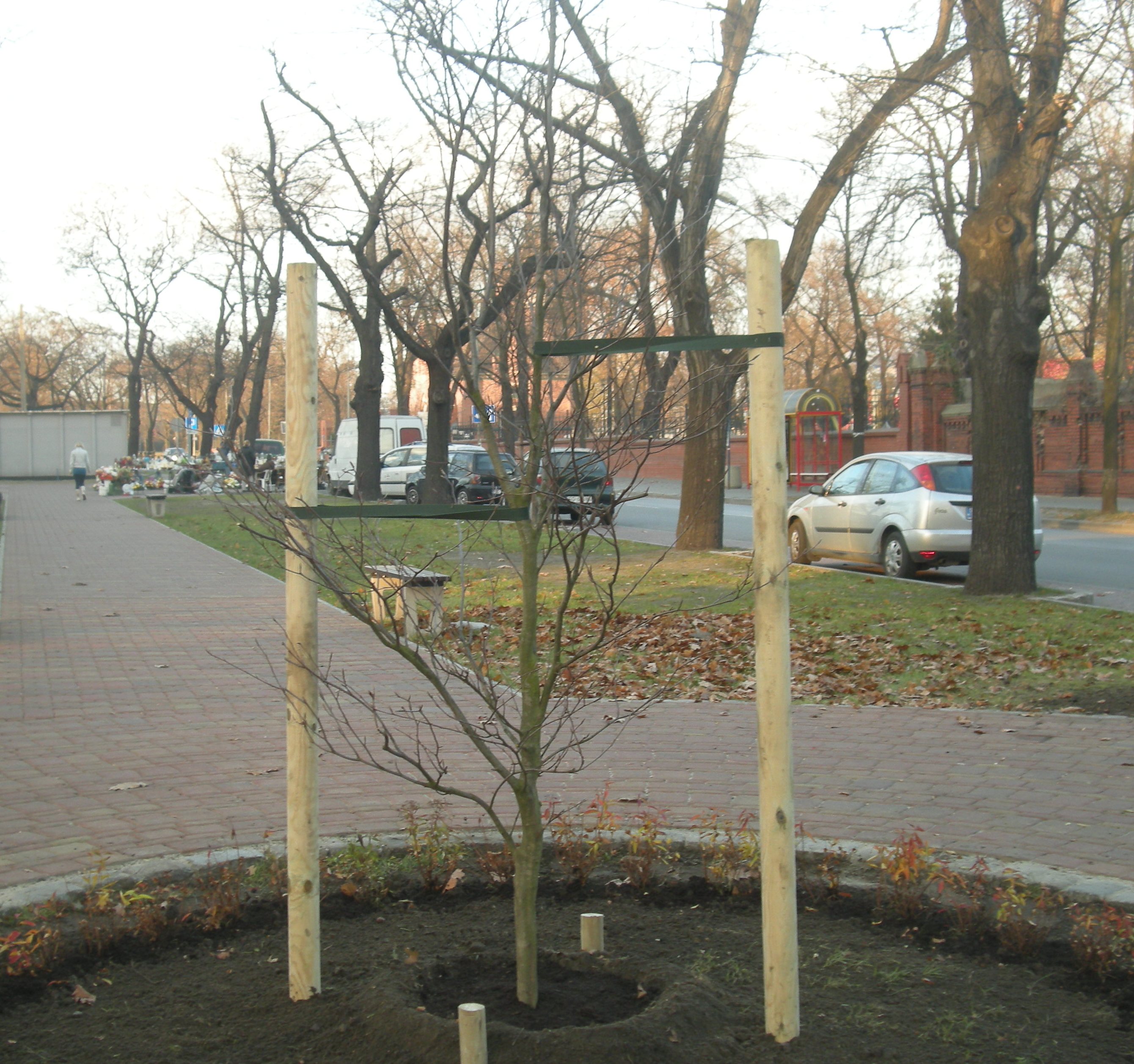 Drzewo posadzone zostało w 2011 r. przez Zarząd Dróg Miejskich było wówczas okazałą, kilkuletnią rośliną.