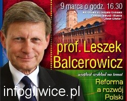 W środę, 9 marca, w Auli Drewnianej Gliwickiej Wyższej Szkoły Przedsiębiorczości (ul. Bojkowska 37, II piętro gmachu GWSP) odbędzie się wykład otwarty prof. Leszka Balcerowicza.