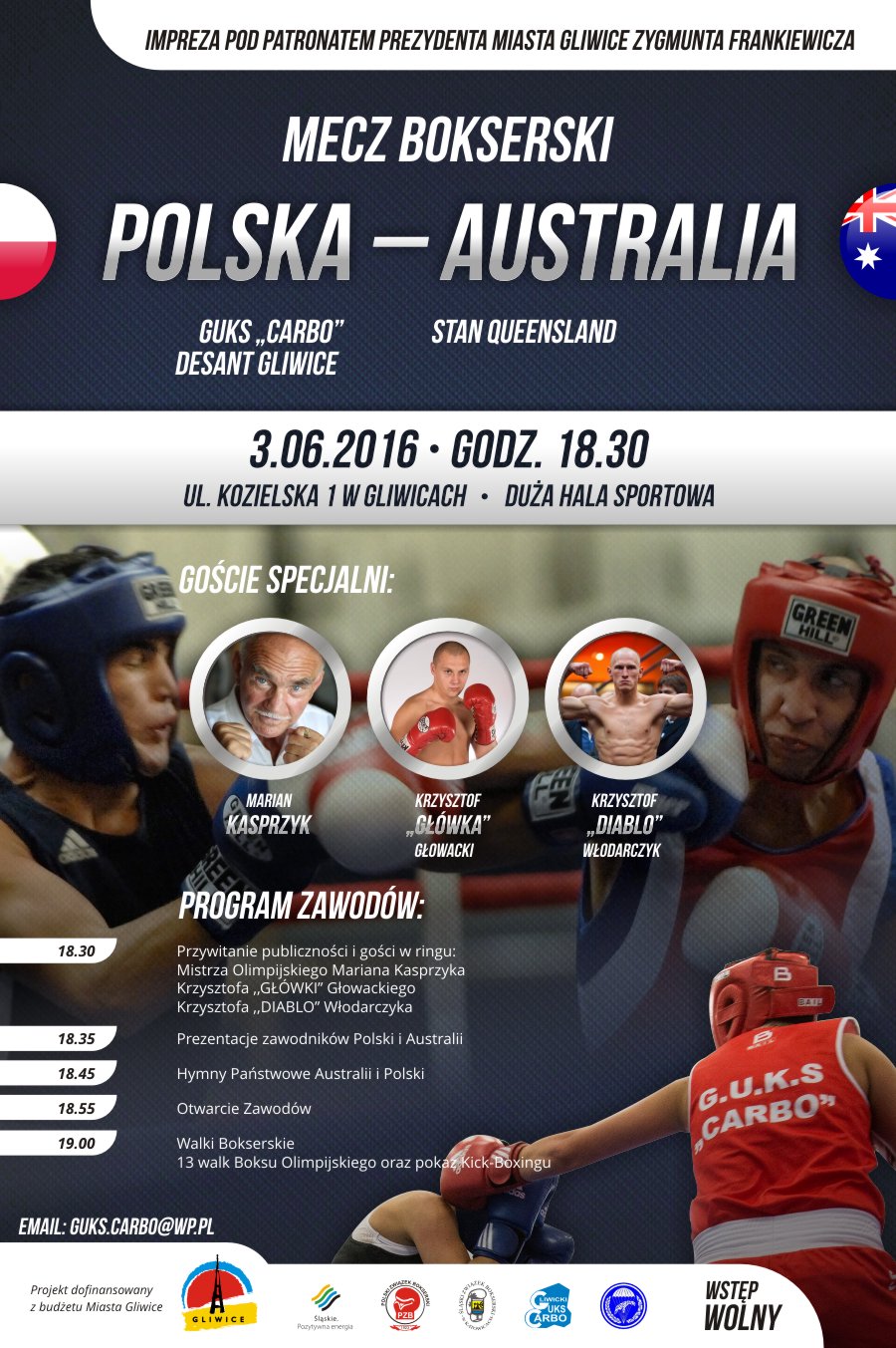 3 czerwca o godz. 18.30 w hali przy ul. Kozielskiej odbędzie się mecz bokserski Polska – Australia.