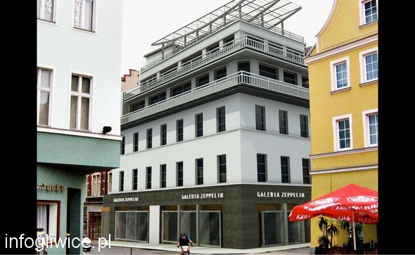 Ciekawie zapowiadał się projekt modernizacji budynku na Starówce. Charakterystyczna bryła na rogu ulic Zwycięstwa i Matejki miała zostać nadbudowana. Projekt przygotowany przez pracownię Rafała Drobczyka zakładał, że na dachu kamienicy pojawi się charakterystyczna konstrukcja stalowo-szklana symbolizująca Zeppelin.