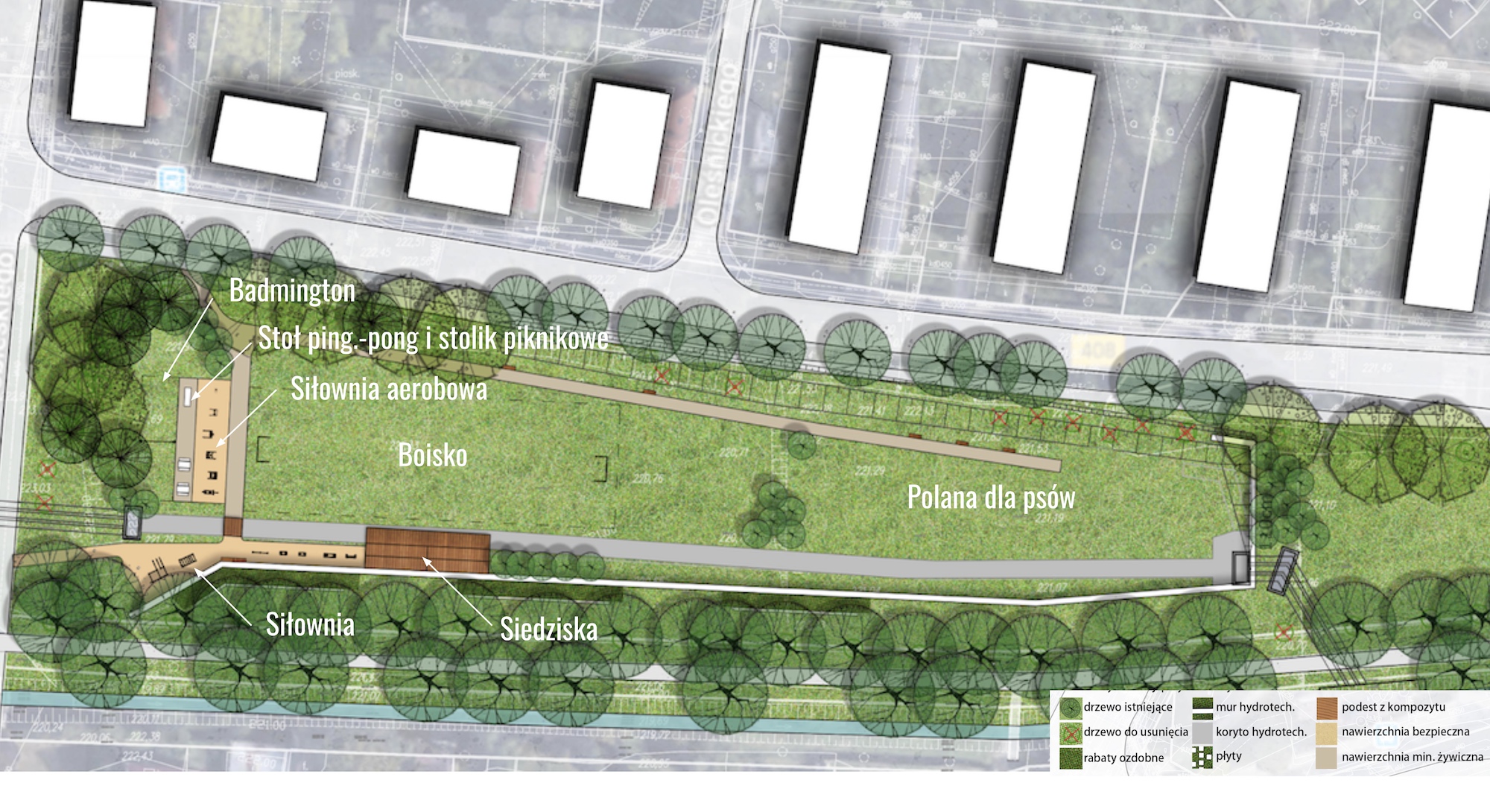 „Do dyspozycji mieszkańców może być m.in. plac zabaw tematycznie związany z bezludną wyspą, nowe boisko, małe ścianki wspinaczkowe, siłownie plenerowe – aerobowa dla mniej zaawansowanych oraz druga do ćwiczeń siłowych i kalistenicznych, podest wielofunkcyjny – przydatny jako scena lub miejsce ćwiczeń i warsztatów” – piszą urzędnicy. „Rowerzystom czy spacerowiczom przyda się placyk ze stolikami piknikowymi – szczególnie podczas dłuższej wycieczki po mieście. Z kolei mieszkańcy, którzy chcą poczytać książkę, opalać się lub porozmawiać będą mogli skorzystać z wielu miejsc do wypoczynku – z hamakami, leżakami lub ławami. Będzie również polanka dla psów” – argumentują w urzędzie.