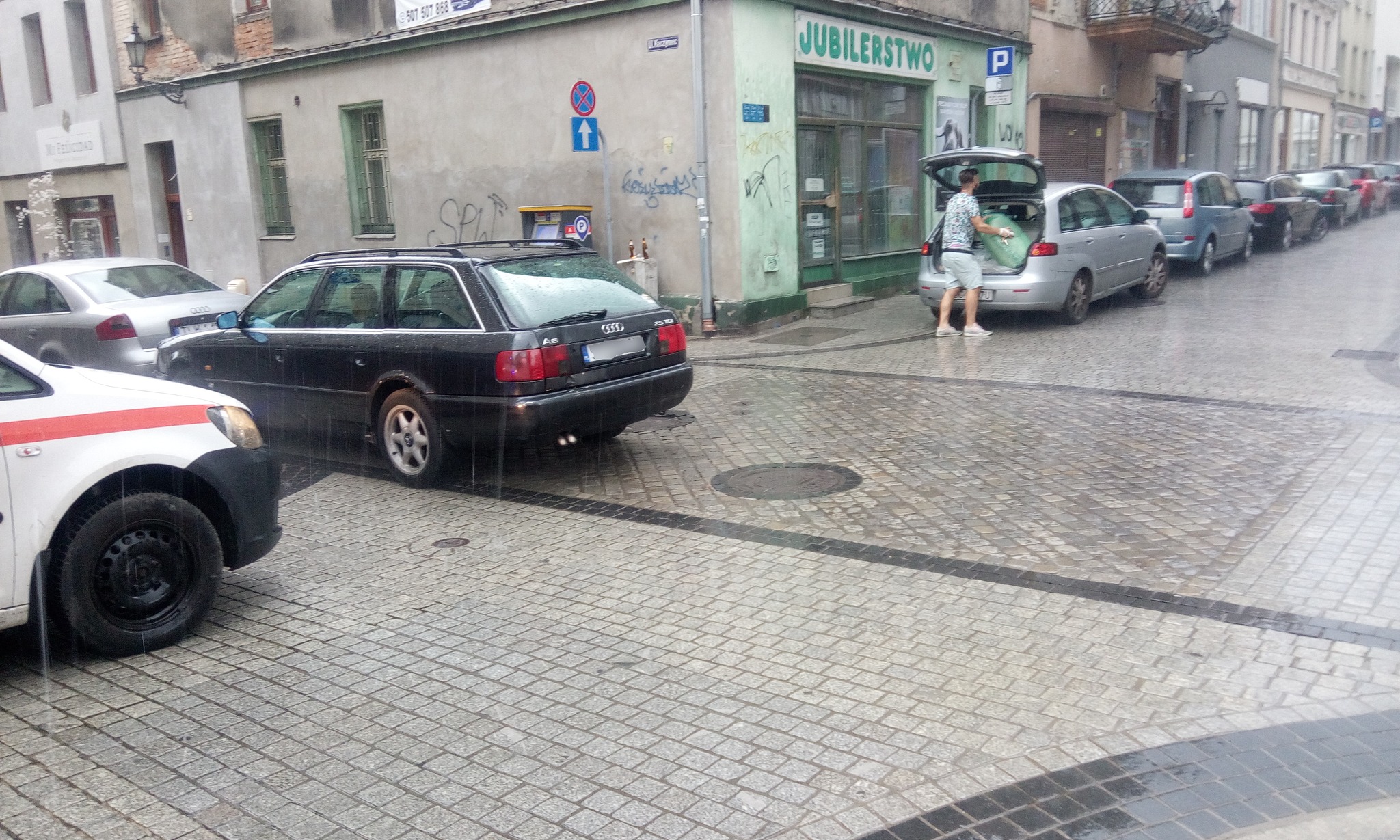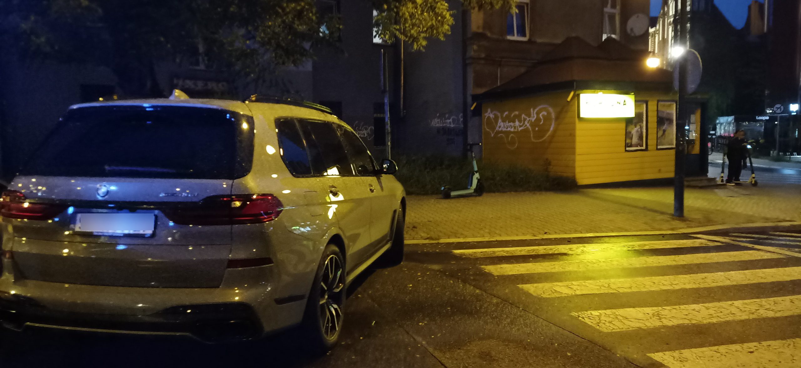 Ostatnie zdjęcie z ul. Dworcowej. Przecież te samochody czasem są aż na tym przejściu zaparkowane i jeszcze za nim na tych białych liniach i to w dzień, gdzie ruch jest duży i nikt tego nie widzi. A tu w nocy kogoś gonią, bo kawałek za znakiem stanął…