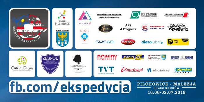 Patronat honorowy objęła: Gmina Pilchowice i Powiat gliwicki. Wśród Partnerów projektu mamy 13 firm, od których otrzymaliśmy wsparcie techniczne i finansowe. Dzięki ich zaangażowaniu mamy odzież wyprawową, magnesy z logiem wyprawy, ubezpieczenie, smsy bez limitu, projekty graficzne, wyprawowego drona, mapę wyprawy oraz mentalne przygotowanie uczestników do ekspedycji! Są marki regularnie wspierające nasz projekt: SMSAPI, Firma ARS 4 Progress, Ed-Cert, Warsztat