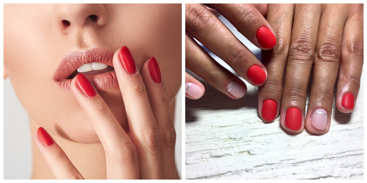 Ten klasyczny i piękny odcień to prawdziwy afrodyzjak. Karminowe barwy przyciągają wzrok i prezentują się niesamowicie szykownie w każdej sytuacji. To idealny manicure na formalne wyjście jak wesele lub firmowa impreza. Połącz czerwone kolor z małą czarną lub garniturem. Do tego odrobina szminki i tuszu do rzęs. Modny i zmysłowy look gotowy!
