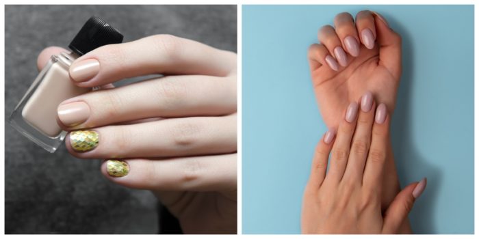 Neutralne i delikatne odcienie wcale nie muszą być nudne! Wystarczy, że jeden lub dwa paznokcie pomalujesz na inny kolor! Beżowe i brzoskwiniowe barwy to świetny wybór jeśli postawiłaś na oryginalną kreację. Będą wyglądać subtelnie i nie odwrócą uwagi od cekinowej sukienki czy tiulowej spódnicy.