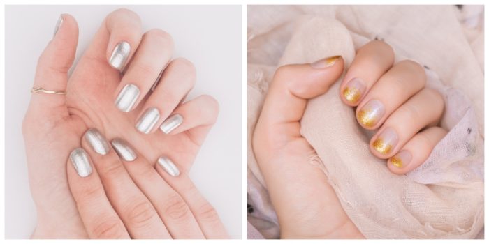 To jeden z najchętniej wybieranych trendów. Wcale nas to nie dziwi. Paznokcie w złotych, srebrnych i holograficznych odcieniach wyglądają niezwykle oryginalne i karnawałowo! Jeśli nie masz pomysłu na imprezowy strój, błyszczący manicure w zupełności go zastąpi. Wybierz lakiery z mieniącymi się drobinkami lub sięgnij po specjalne pyłki, które wciera się w pomalowaną płytkę.