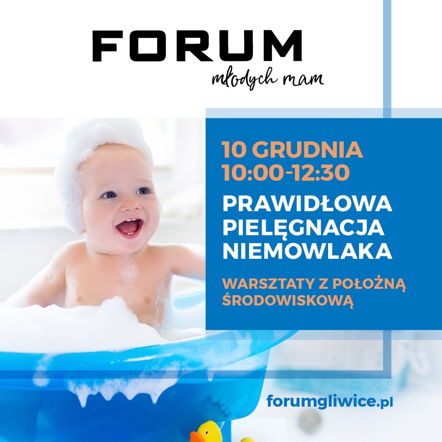CH FORUM zaprasza 10 grudnia (wtorek, godz. 10:00 – 12:30) na kolejne spotkanie z cyklu FORUM Młodych Mam. Tym razem warsztaty odbędą się z położną środowiskową, która udzieli porad na temat prawidłowej pielęgnacji maluszków.
